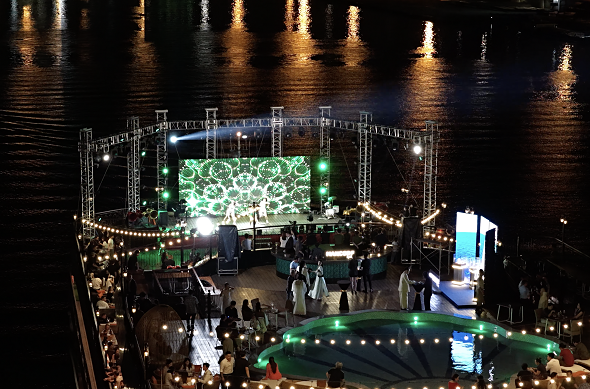 - Tầng 5 – Đỉnh cao giải trí:REVER SKY LOUNGE với phong cách Ai Cập cổ đại kết hợp công nghệ âm thanh 3D từ Bang & Olufsen; cùng SUNDECK rộng 1.100m² sở hữu tầm nhìn 360 độ toàn cảnh sông Sài Gòn và hệ thống âm thanh chuyên nghiệp Void Acoustic.