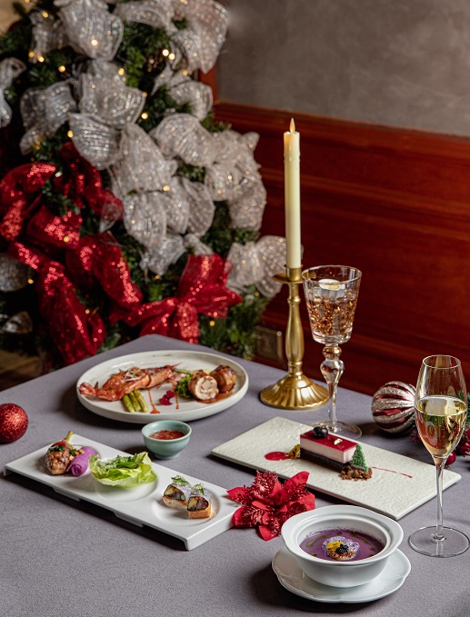 Kết thúc bằng dư vị ngọt ngào của món tráng miệng Bánh mousse phúc bồn tử phủ sô-cô-la trắng, khép lại hành trình ẩm thực bằng kết cấu mềm mịn, vị chua thanh của phúc bồn tử và độ ngọt dịu của sô-cô-la, tạo hậu vị nhẹ nhàng và tinh tế – như một lời chúc an lành cho mùa lễ hội.